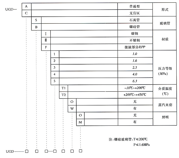 被測介質(zhì)工作壓力:1.6(玻璃管),2.5,4.0,6.3MPa(石英管)
