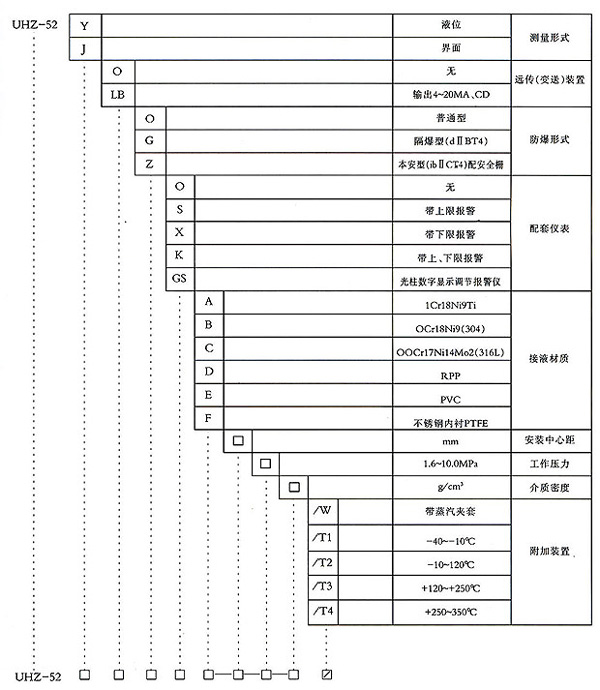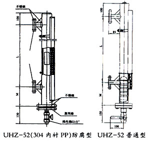 UHZ-52系列磁翻柱浮子液位計,是本廠參考、國內(nèi)外同類產(chǎn)品,并加以吸收、消化、提高,按原化工部頒布的磁性液位計標(biāo)準HG/T21584-95研制生產(chǎn)的產(chǎn)品。可用于塔、罐、槽、球形容器和鍋爐等設(shè)備的介質(zhì)液位檢測。該系列磁性液位計可以做到高密封、防泄漏適應(yīng)于高壓、高溫、腐蝕性介質(zhì)的液位測量,使用可靠、安全性好,它彌補了玻璃板(管)液位計指示不清晰,易破碎的不足,不受高、低溫度劇變的影響,不需多組液位計的組合。全過程測量無盲區(qū),顯示醒目,讀數(shù)直觀,測量范圍大。特別是現(xiàn)場指示部分,由于不與液體介質(zhì)直接接觸,所以對高溫、高壓、有毒、有害、強腐蝕性介質(zhì),更顯其優(yōu)越性。因此,它比傳統(tǒng)的玻璃板(管)式液位計具有更高的可靠性、安全性、先進性、實用性。