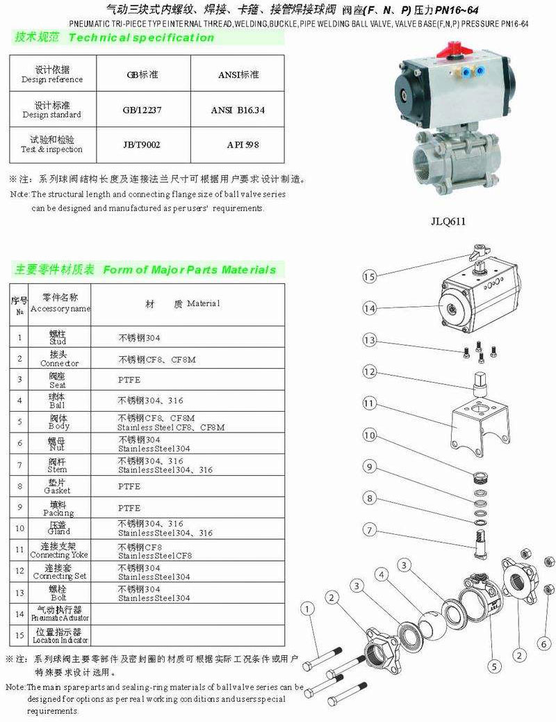 Q611F氣動(dòng)三塊式內(nèi)螺紋球閥